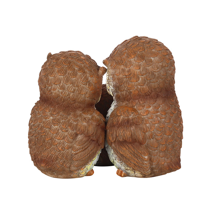 This sweet animal ornament shows a loving embrace between a family of resin owls.
