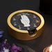 A set of four coasters inspired by the mystical art of palm reading. Each round coaster features a modern illustration of an open palm with labels and astrological symbols. MDF with foam pads to prevent slipping and comes in a matching gold tone holder.