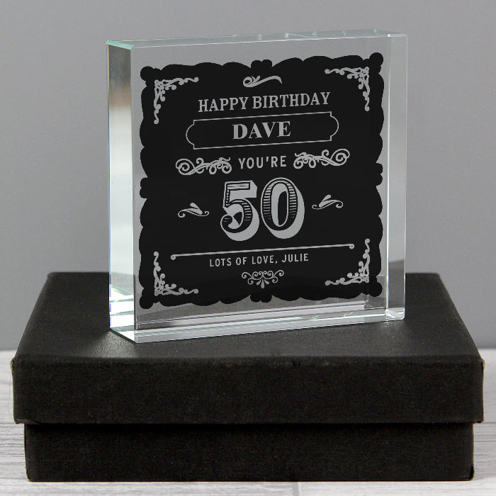 Personalised 50th Birthday Vintage Crystal Glass Block