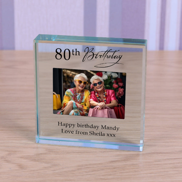 80th birthdays are worth celebrating so mark the occasion with this delightful personalised glass block.