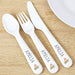 This practical 3 piece set of plastic cutlery featuring the Animal Alphabet design can be personalised with any name up to 12 characters in length. Personalisation will appear in fixed upper case.