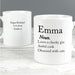 Personalise this mug with any name, and 4 points below. The word "noun" is a fixed part of the design and does not need to be added to the text when ordering.