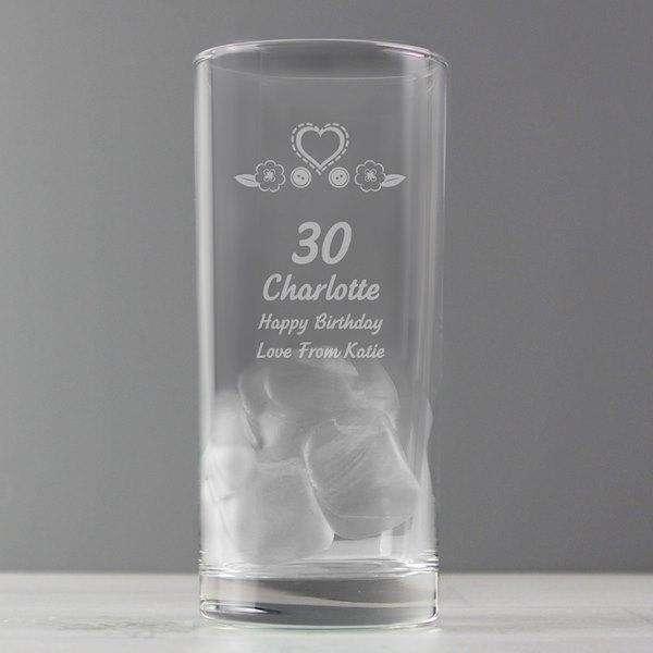 Personalise this glass with an age up to 2 characters, a name up to 12 characters and a message over two lines of 20 characters per line.