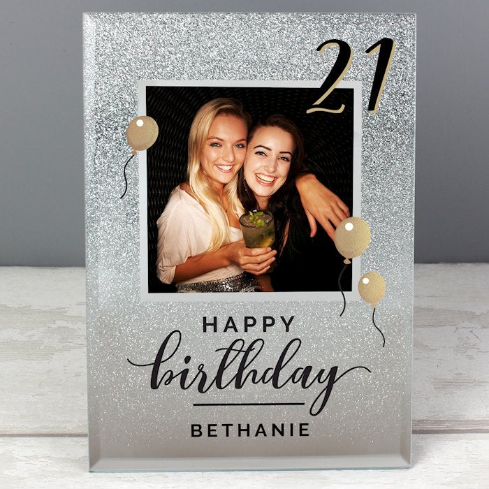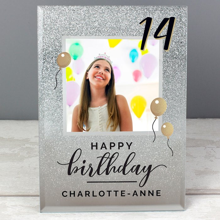 Personalised Birthday Age Glitter Glass Photo Frame 4x4