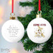 The front of this ceramic bauble can be personalised with a name up to 12 characters (which will appear in UPPERCASE) and a year up to 4 characters in length. The back of the bauble can be personalised with 4 lines of text with up to 20 characters per line.