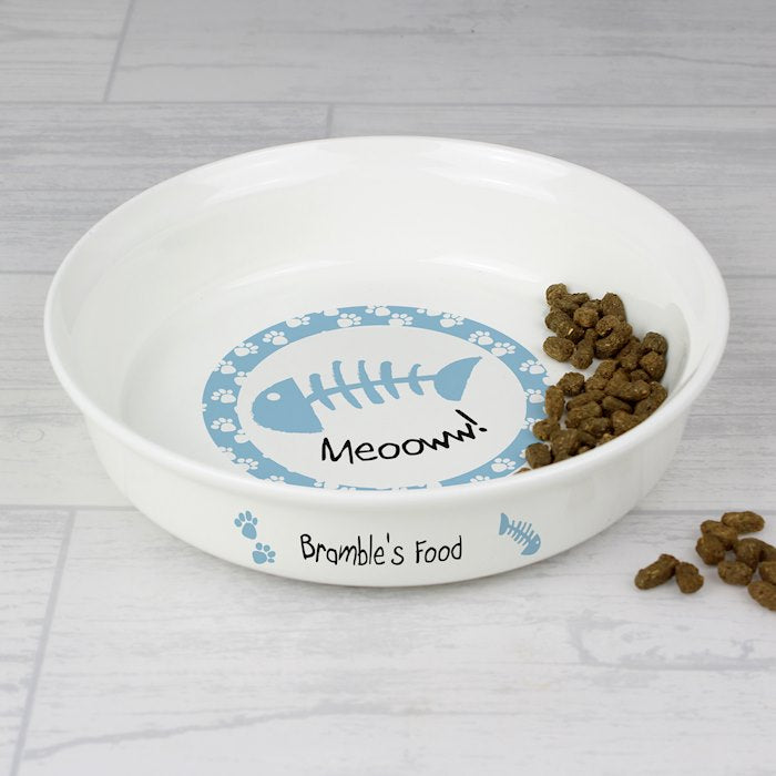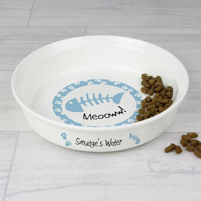 Make this bowl unique by personalising the front with your pets name followed by food or water up to 15 characters. The bowl also features a funky fish-bone design with the fixed wording 'Meooww!'