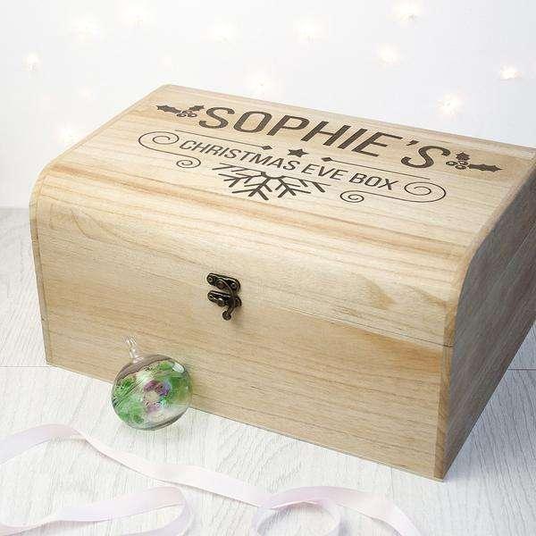 The words 'Christmas Eve Box' come as standard text. Please be sure to add the name exactly as you would like it engraved, for example if the name is Thomas please write Thomas'