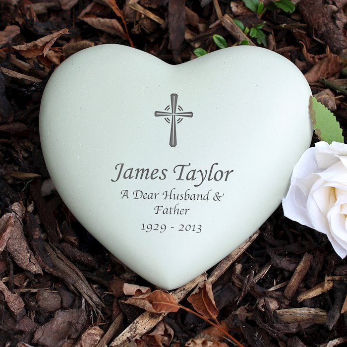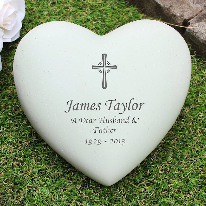 Personalise this Cross Heart Memorial with a name up to 12 characters and up to 3 lines of 20 characters each.