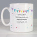 The mug can be personalised with any message on the front up to 20 characters. We can then personalised with 4 lines on the back, 20 characters per line.