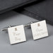 Personalise these Decorative Wedding Page Boy Square Cufflinks with a name up to 9 characters and a date up to 10 characters.