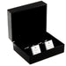 Cufflinks are presented in a hard black plastic box.