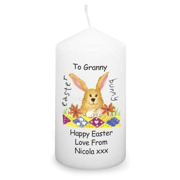 Personalise this Easter Bunny Candle with name at the top of the candle up to 25 characters (please include the "To" if required) and message at the bottom of the candle over 3 lines and up to 20 characters per line. The wording "Easter Bunny" is standard text.
