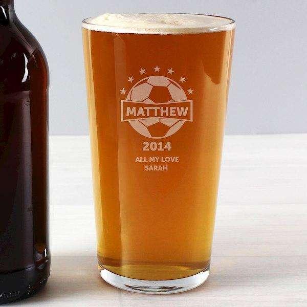 This personalised football pint glass makes a perfect gift for his Birthday.