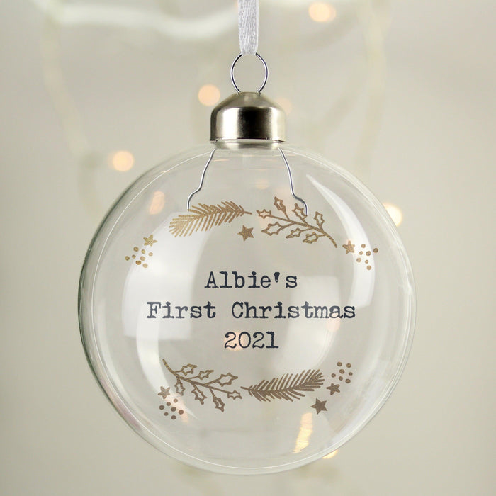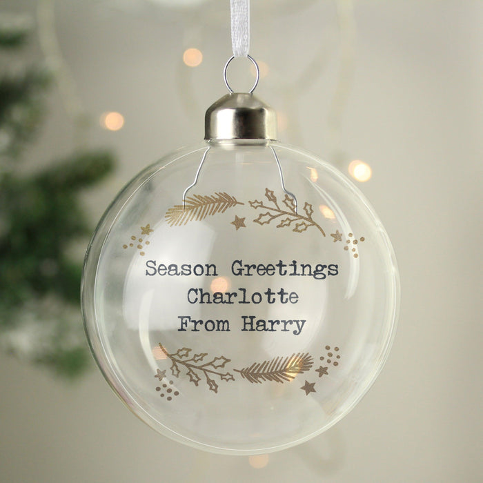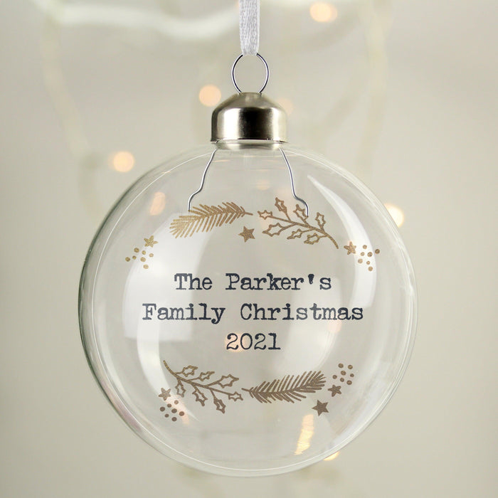 This Personalised Gold Wreath Glass Bauble is a great way to add a personal touch to the Christmas tree.