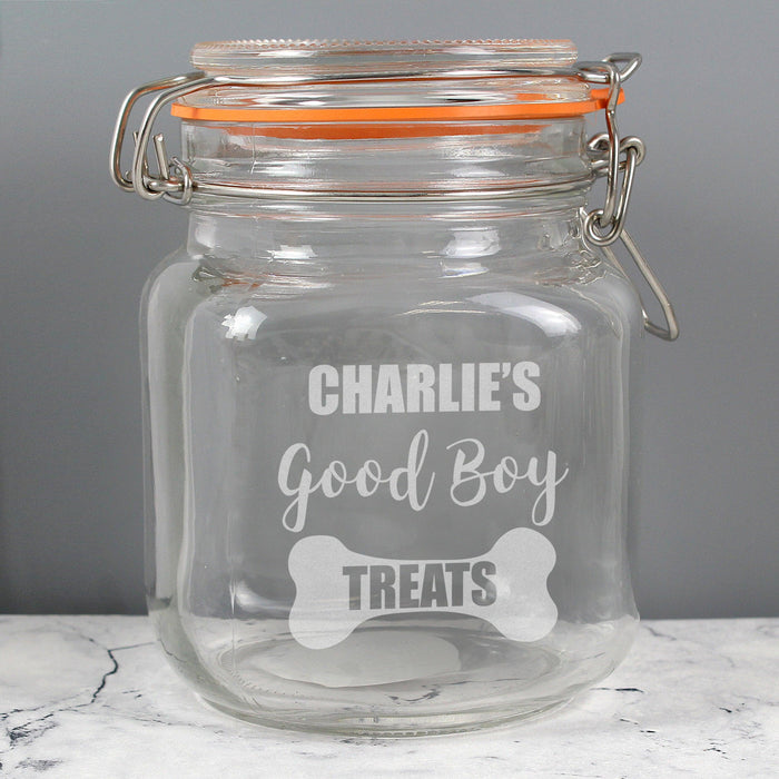 Personalised Good Boy Pet Treats Glass Kilner Jar