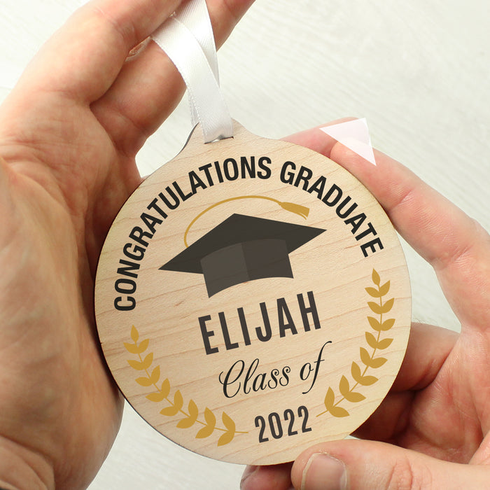 This Personalised Graduation Round Wooden Decoration is the perfect gift for celebrating a Graduation!