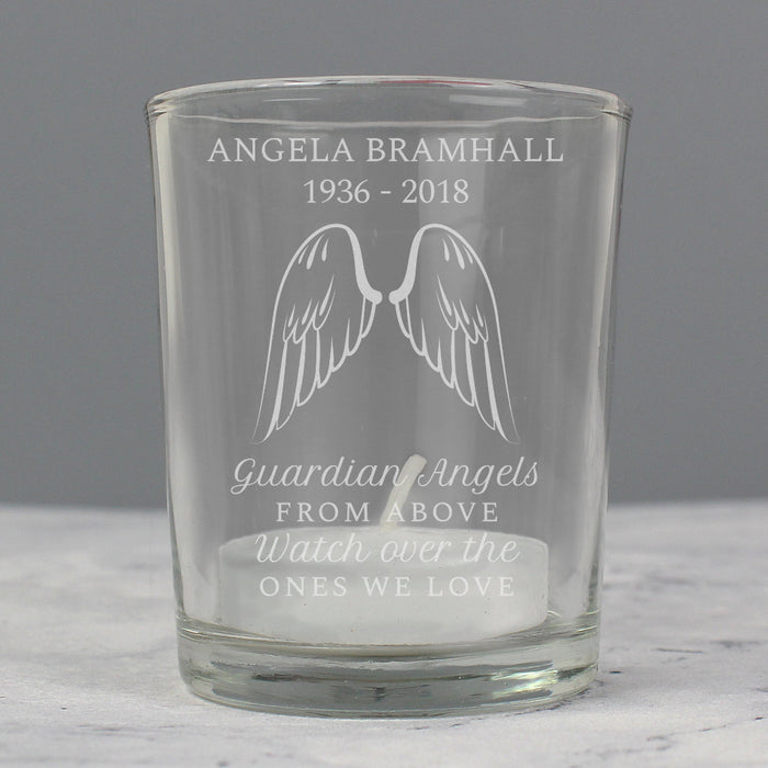 Personalised Guardian Angel Wings Memorial Votive Candle Holder