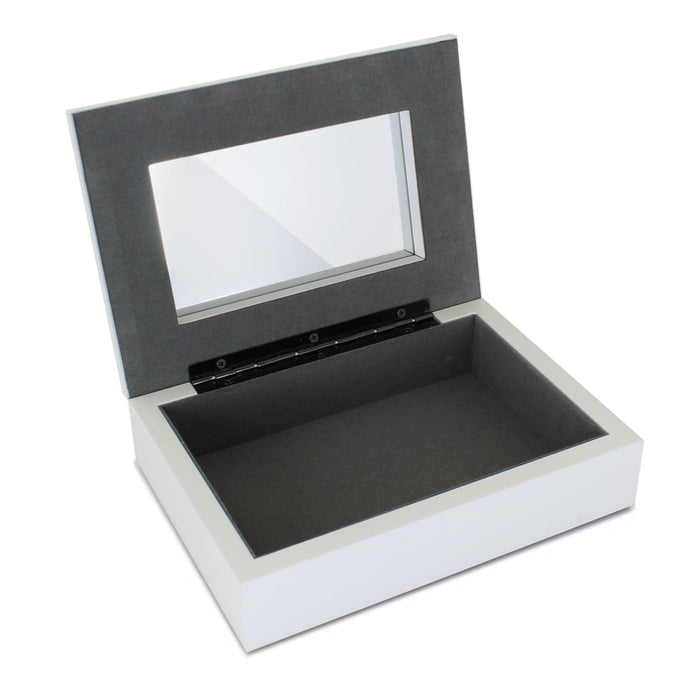 The Wooden Jewellery box has a large compartment with a mirror in the lid.