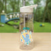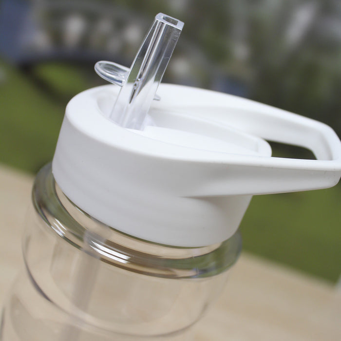 The BPA free plastic bottle features a secure screw top and a reusable drinking straw to stop those spillages.