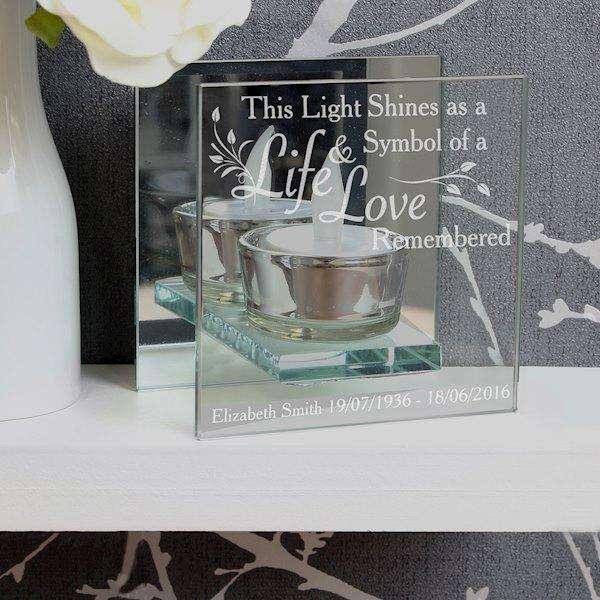 Personalised Life & Love Memorial Mirrored Glass Tea Light Holder
