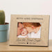 A high quality finish oak veneer wood frame. The bottom is engraved with"Love At First Sight", add a name, date and weight to complete the design.