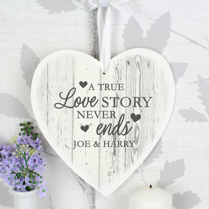 This stunning Personalised Love Story 22cm Large Wooden Heart Decoration is a perfect way to add a romantic touch to your home.