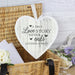 This wooden heart decoration can be personalised with a line of text of up to 25 characters