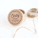 Round beech wood box engraved with a name and in a smaller font below, the words 'will you marry me?'