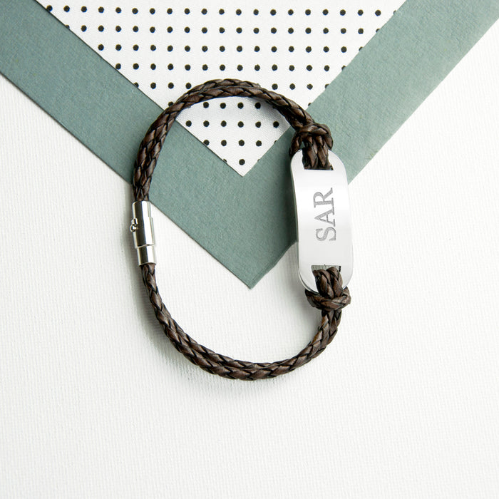 Personalised Men's Statement Woven Leather Bracelet In Brown