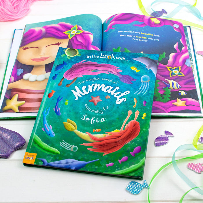 This personalised mermaid book opens up a whole new world to children as they meet the magical and mysterious mermaids! An enhanced reading experience for children as the text and illustrations on each page feature with the child’s name. Furthermore, there are even activities throughout the book for children to engage with. As a result, this book makes a perfect gift for children who are mer-crazy. Includes special pages for a personal message