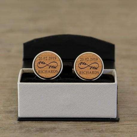 Personalised Mr and Mrs Infinity Wedding Wooden Cufflinks