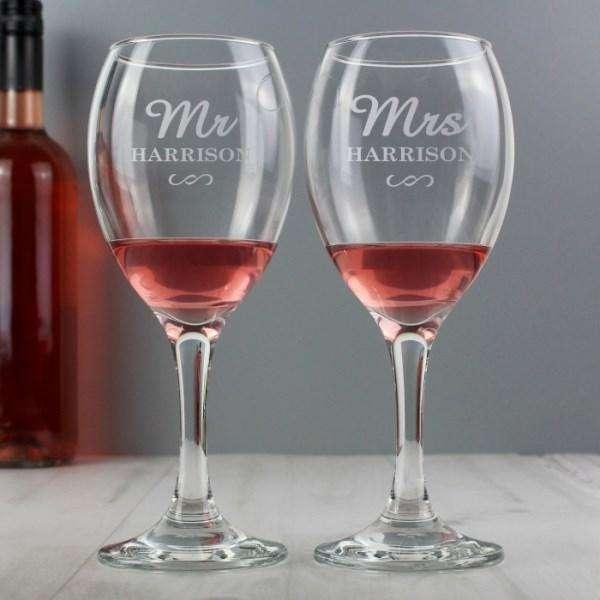 Personalised Mr & Mrs Wine Glass Set