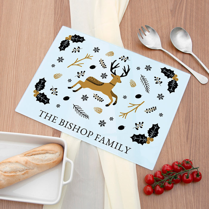 Personalised Nordic Woodland Family Christmas Glass Worktop Saver