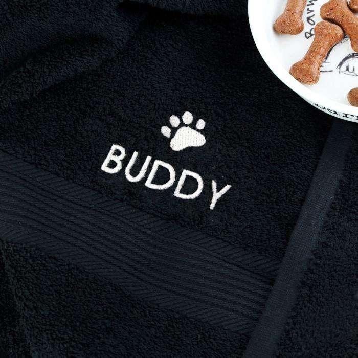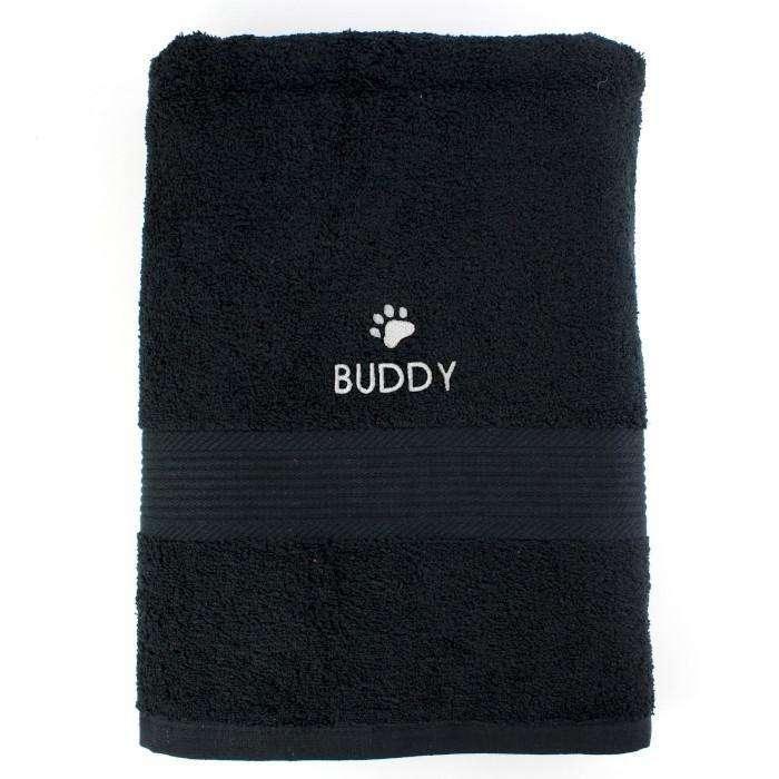 Treat a pampered pooch to their very own towl with this personalised Pet Paw Black Bath Towel!
