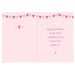 Personalise the first 2 lines with 2 roles up to 12 characters per line. This is followed by a message line of up to 20 characters on the front. The inside of the card can be personalised with any message up to 5 lines, with up to 20 characters per line.