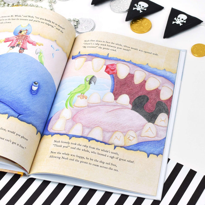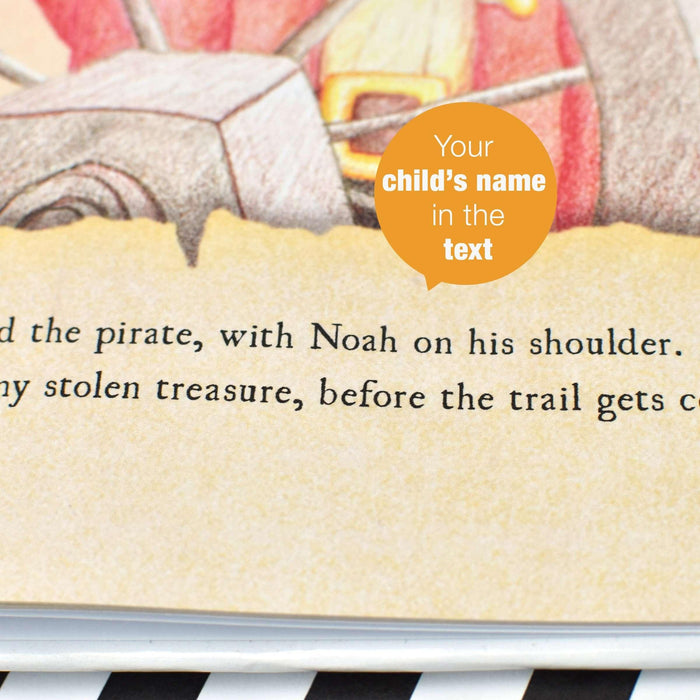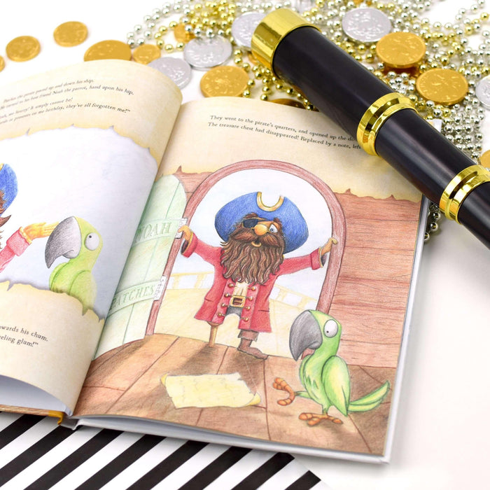 It is Patches the Pirate’s birthday, but everyone seems to have forgotten! Worse still, his arch-enemy, the naughty ninja, has stolen his treasure! Your child plays the role of the Pirate’s best friend, and together they embark on a swashbuckling adventure, meeting all sorts of sea-creatures and having lots of fun along the way! Will they be able to find the eight missing pieces of the pirate’s treasure? This charming book will captivate pirate-mad children, who will love seeing their name appear throughout the story, and is the perfect gift for any occasion. The recipient’s name and a personalised message can also be added to the opening page.