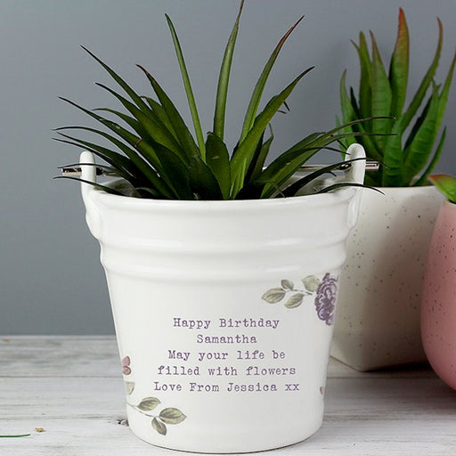 Personalise this Secret Garden Porcelain Bucket with a message over 5 lines of 20 characters per line.