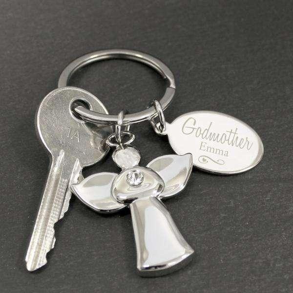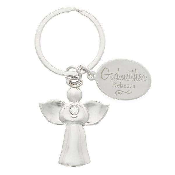 Personalised Silver Plated Godmother Angel Keyring