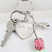 Personalised Silver Plated Swirls & Hearts Pink Rose Keyring