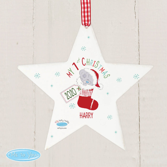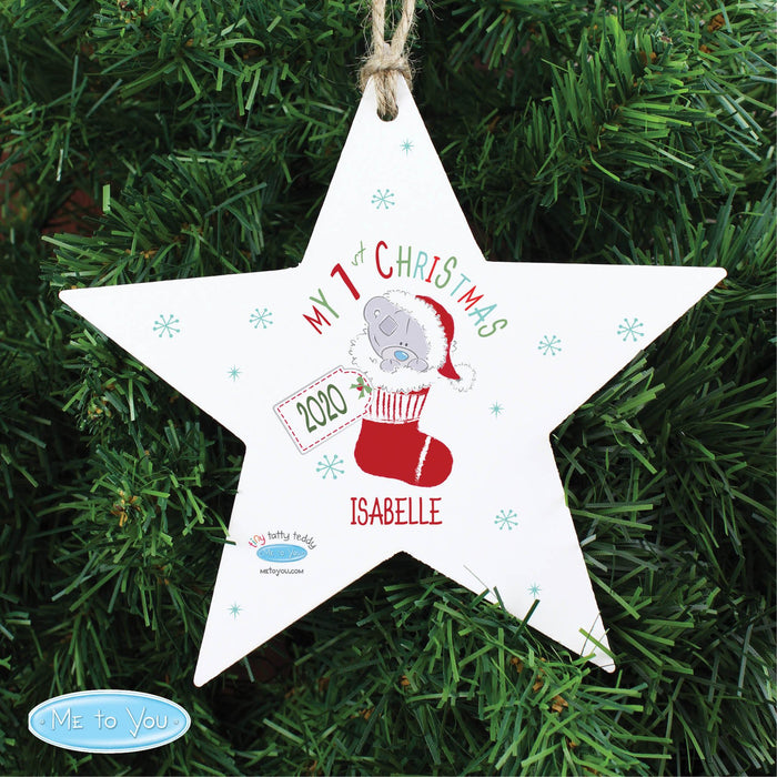 Personalised Tiny Tatty Teddy My 1st Christmas Stocking Wooden Star Decoration