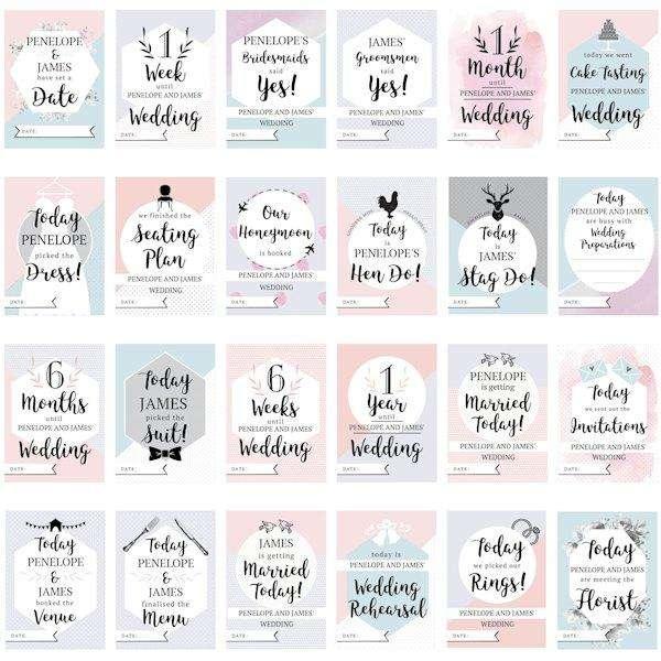 These Personalised Wedding Cards, for Milestone Moments are the perfect way to document those special moments building up to your big day. The back of each card has a handy note section, to help keep you organised on and track!