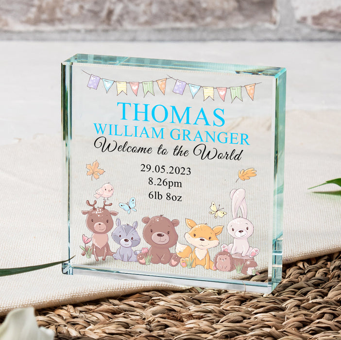 Personalised Welcome to the World New Baby Glass Block - Pink or Blue
