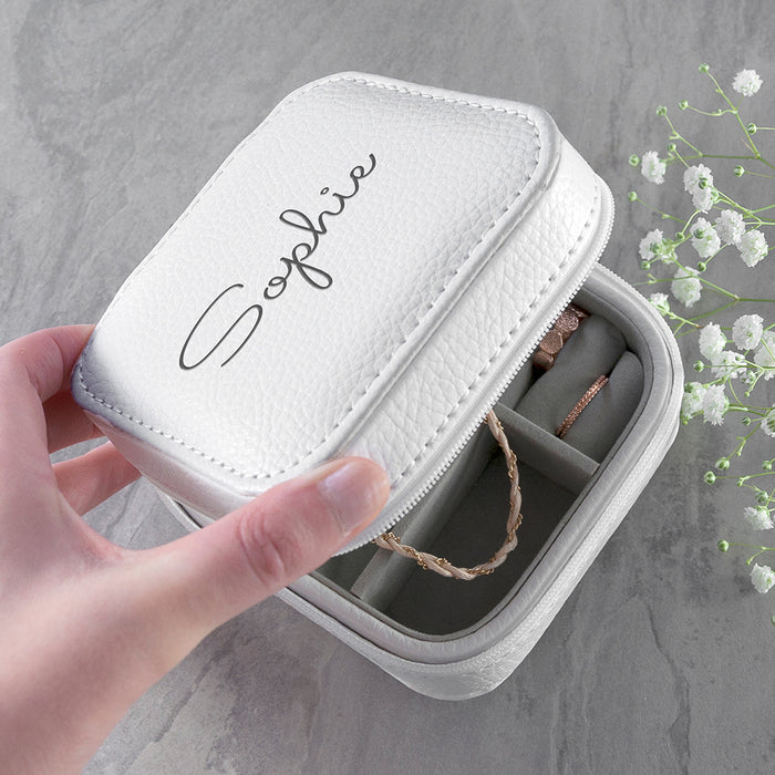 Personalised White Travel Jewellery Case