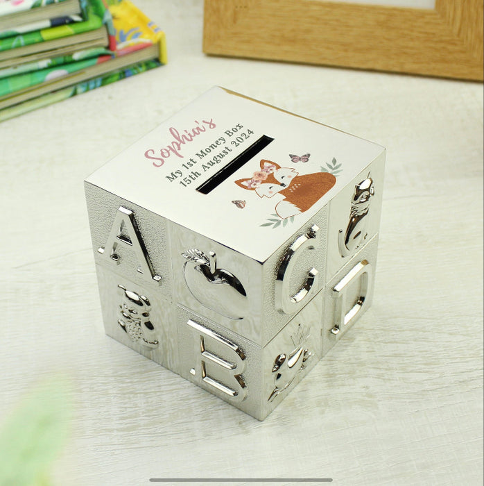 Personalised Woodland Fox ABC Silver Plated Money Box