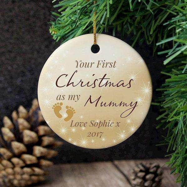 Our Personalised 1st Christmas As My Mummy Round Ceramic Decoration is perfect for celebrating first Christmas as a mummy.