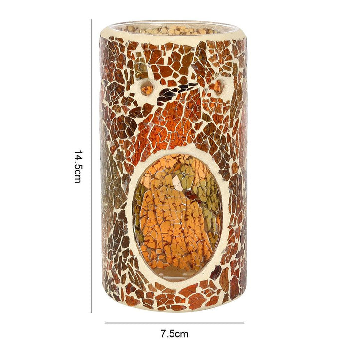 Stunning pillar shaped oil burner with a brown mirrored crackle effect. Would look beautiful in any home. This item can also be used as a wax melt burner however it is advisable to consider the size and depth of the bowl when adding wax to ensure it will not overrun the edges when melted.