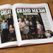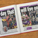 This newspaper book is A3 tabloid in size and is bound in a red cloth hardback cover with a gold-foil embossed design.