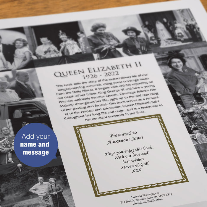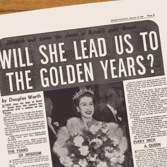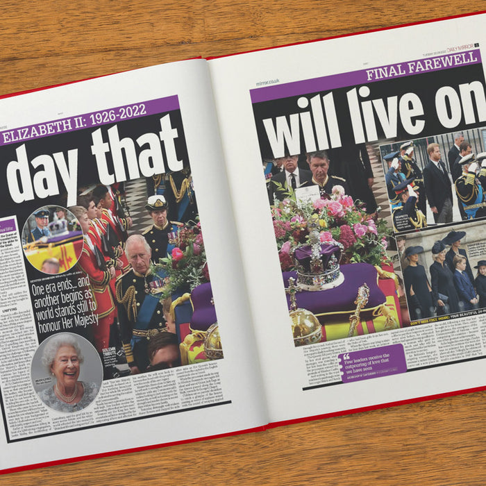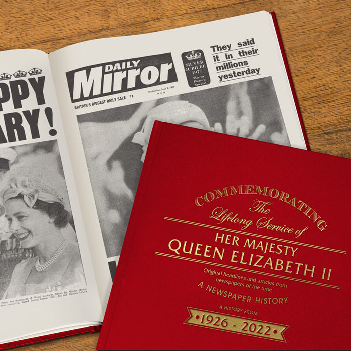 Read press reports of the death of King George VI, as the young Princess saw herself thrust into the spotlight as the new Queen, all while grieving for her father. Newspaper coverage continues in the book and follows Her Majesty through her seventy-year reign, giving a fascinating insight into the of-the-time press opinion of the Queen. Coverage includes Royal tours, the births of her children, and grandchildren, and of course the patriotic celebrations of each Jubilee. Newspaper coverage includes reports of the sad passing of the Queen on the 8th of September 2022, the 10 days of mourning that followed, and Her Majesty's state funeral.