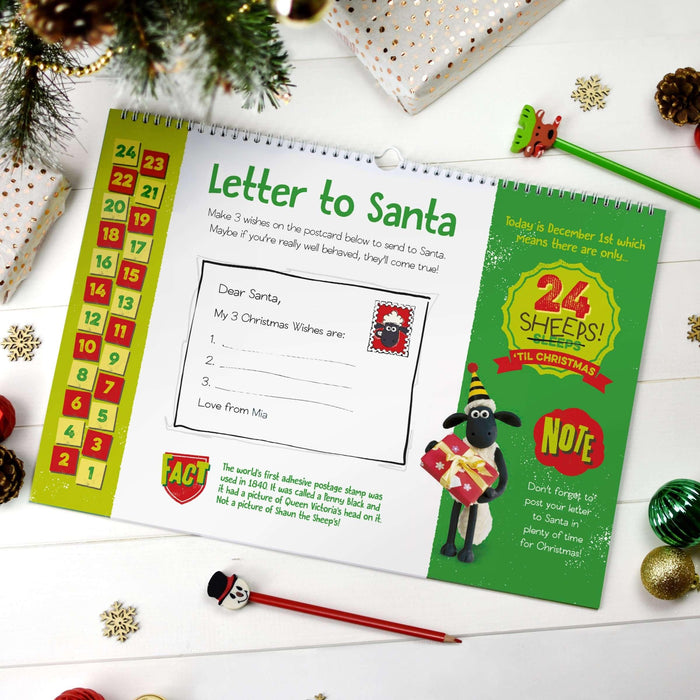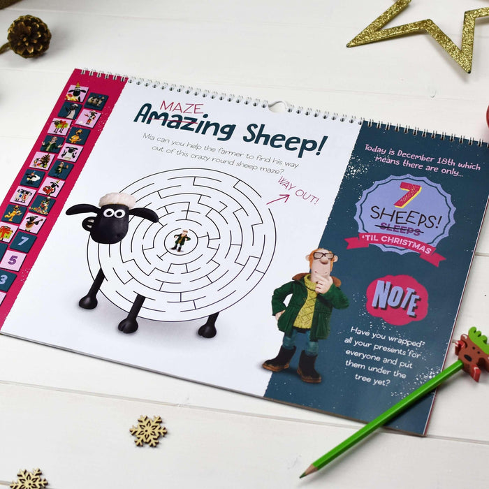 Each page also contains images of Shaun the Sheep, Bitzer the Dog and the rest of their woolly friends, as they help youngsters count down to the big day.