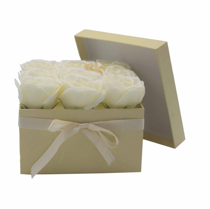 9 Cream Roses Square Soap Flower Gift Bouquet